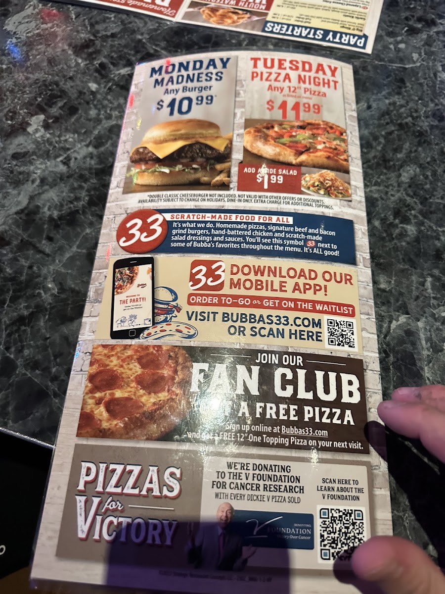 Welcome to Bubba's 33 Fishers, where the menu showcases a delightful array of American comfort food, crafted for both hearty appetites and casual diners. Located in Fishers, Indiana, this restaurant emphasizes generous portions and affordability, earning its praise from locals and visitors alike.